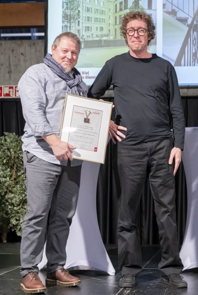 Die Auszeichnung als drittbeste Liegenschaftserneuerung ging an die Bieler Wohnbaugenossenschaft biwog und an Casanostra, Verein für Wohnhilfe, mit dem Projekt «Siedlung Wasenstrasse 34-46».